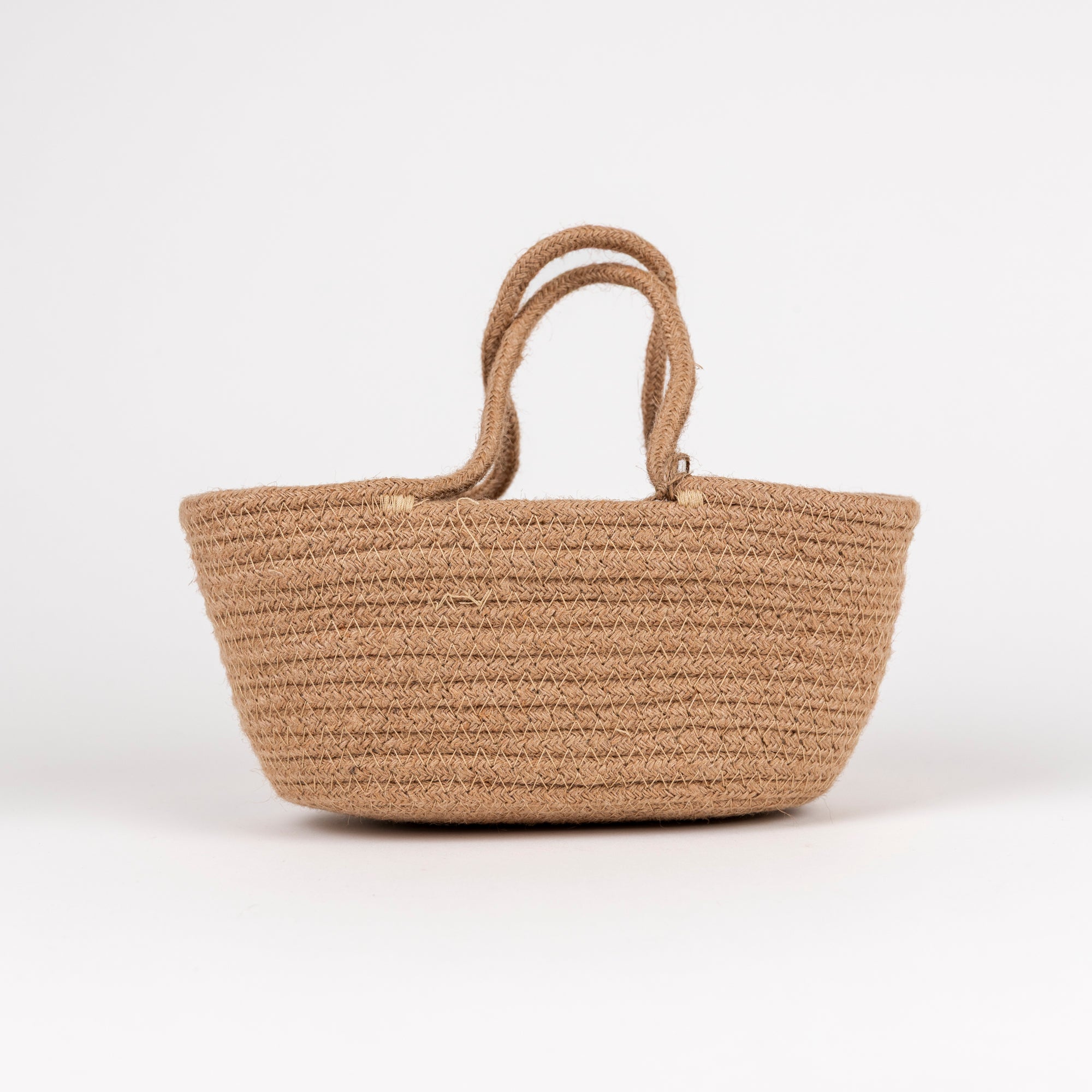 Perfectly sized for little hands and big imaginations! This charming rope basket features hand-braided natural jute construction that's built to last through years of play. Sturdy walls keep toys, blankets, and nursery essentials neatly contained, while the convenient handles make it a breeze for kids to carry their treasures from room to room. A delightful storage solution that's as functional as it is fun.