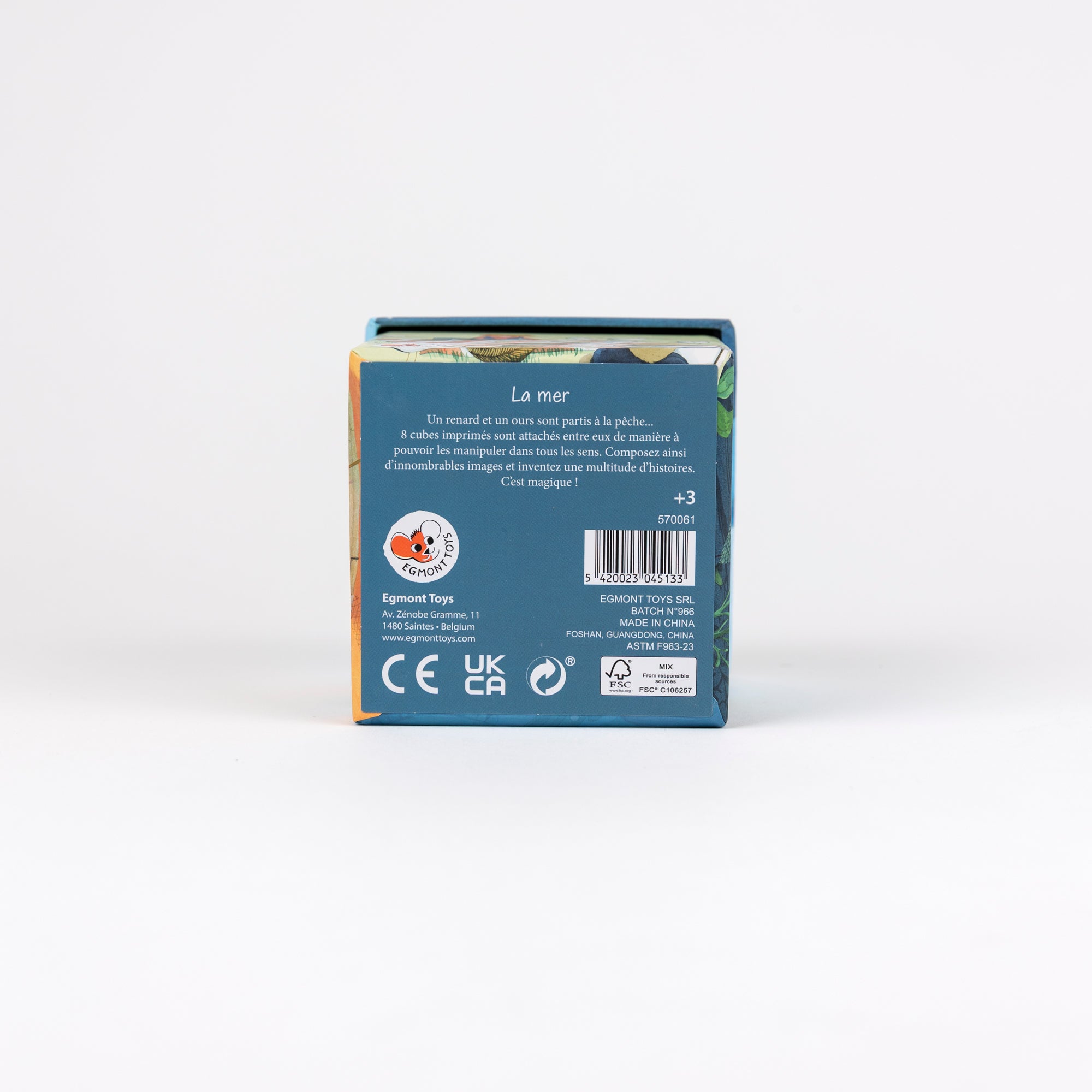 The Egmont Toys Sea Infinity Cube features eight vibrant printed cubes connected to twist and turn in every direction. Create endless images and weave imaginative stories—like a fox and a bear embarking on a fishing adventure. This playful puzzle encourages creativity and hours of fun for all ages.